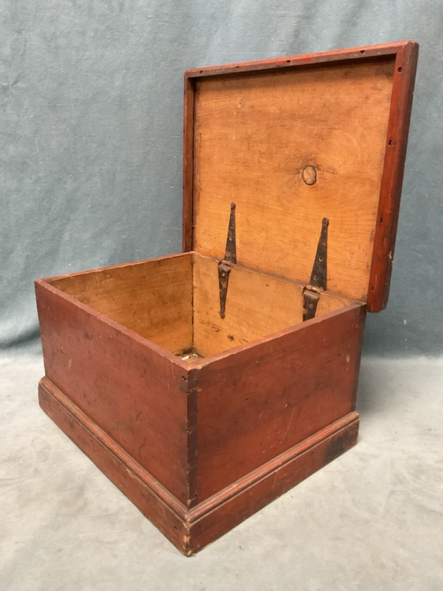 A Victorian dovetailed pine box on moulded plinth; and a rectangular stained box. (2)