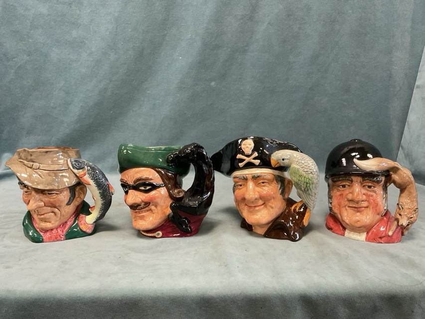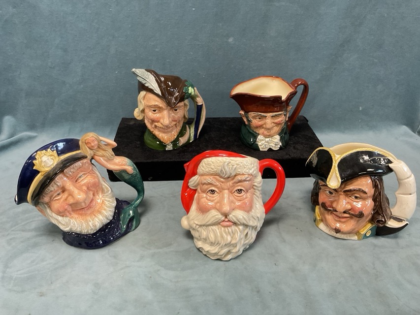 Nine Royal Doulton character jugs - Gone Away, Santa Claus, Robin Hood, Old Salt, Poacher, Dick Turpin, Capt Morgan, Old Charles, Long John Silver. (9)