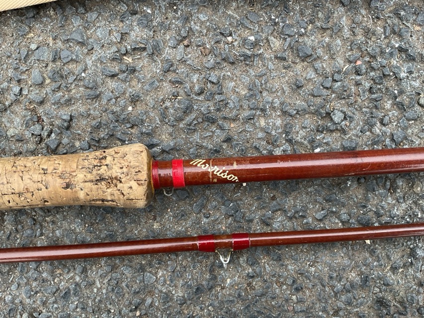 An 8ft 10in Hardy Jet #6 two-piece fibreglass trout fly rod; and a 9ft 4in Morrison fibreglass two-piece fly rod - both with sleeves. (2)
