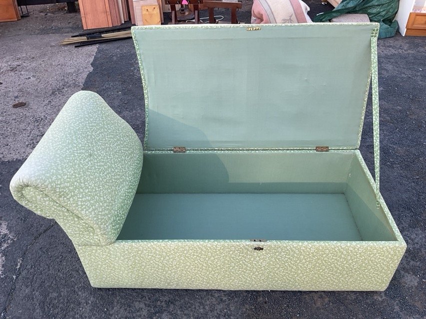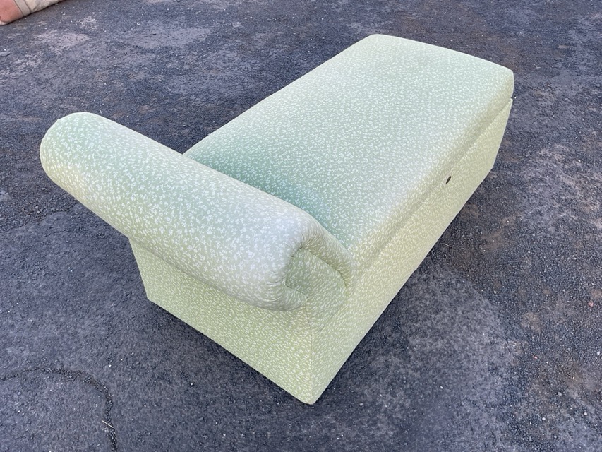 A contemporary upholstered chaise with padded rest and rectangular sprung upholstered box seat, raised on block feet. (56.5in)