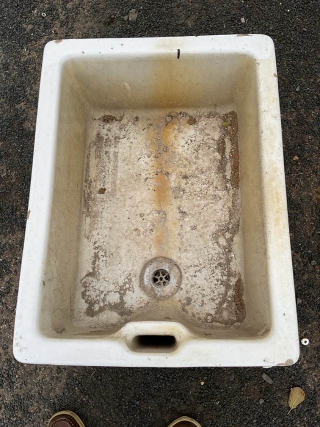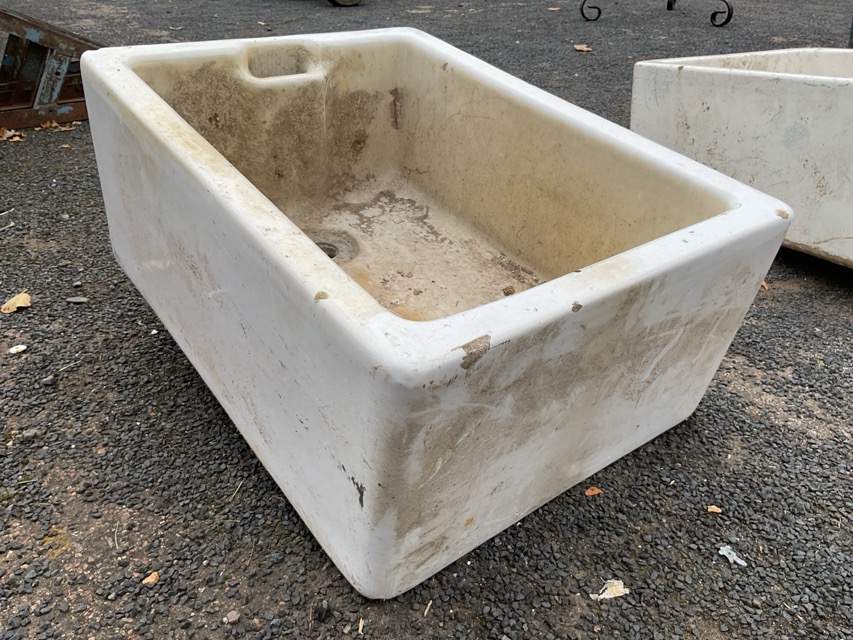 A rectangular glazed belfast sink with integral overflow. (24.25in x 18.25in x 10in)