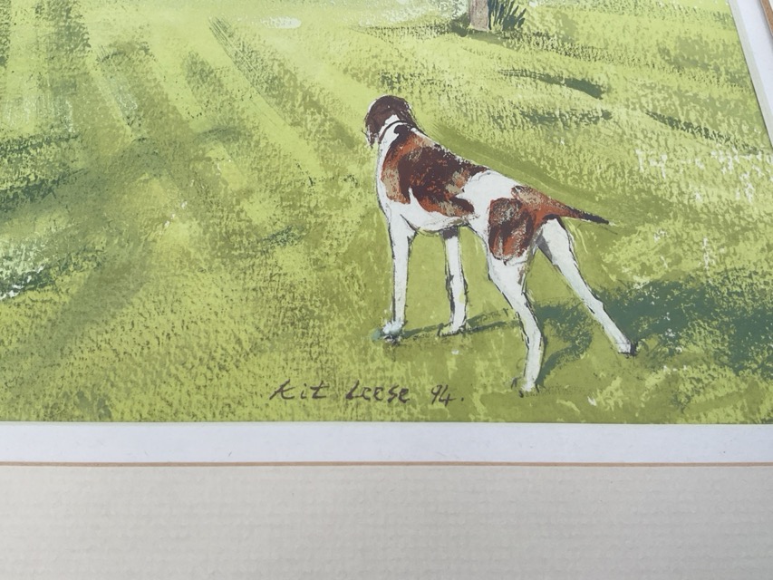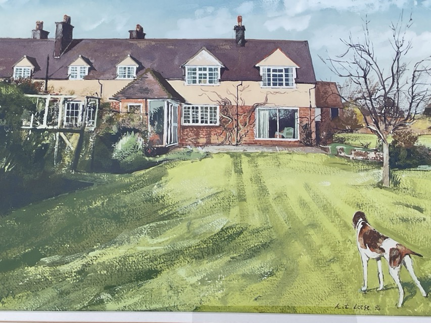 Kit Leese, gouache, study of a house with dog on lawn, signed, mounted & framed. (17.25in x 12.5in)