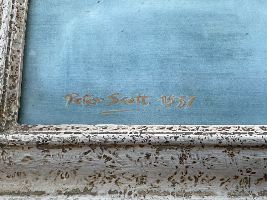 Peter Scott, coastal evening estuary view with geese, titled to verso Brent Geese Flighting under Mackerel Sky, signed in the print & dated 1937, framed. (23.5in x 15.75in)
