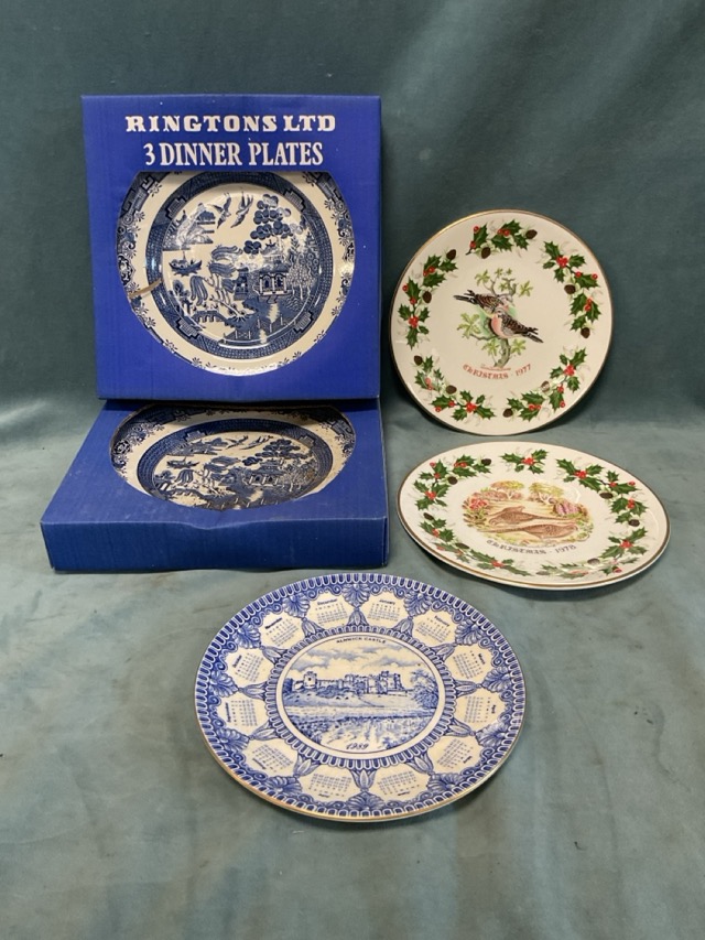 Miscellaneous ceramics - novelty teapots, a Capo-di-Monte bell, Mabel Lucie Attwell, Wedgwood, boxed blue & white Ringtons, Doulton series ware, a biscuit barrel, a pair of Japanese porcelain plates, a pair of hunting plates, etc. (A lot)