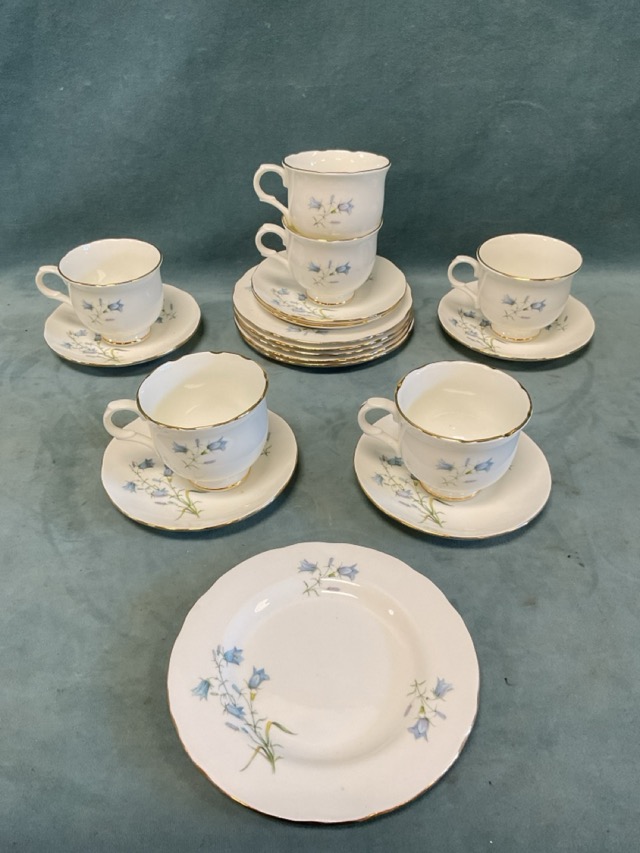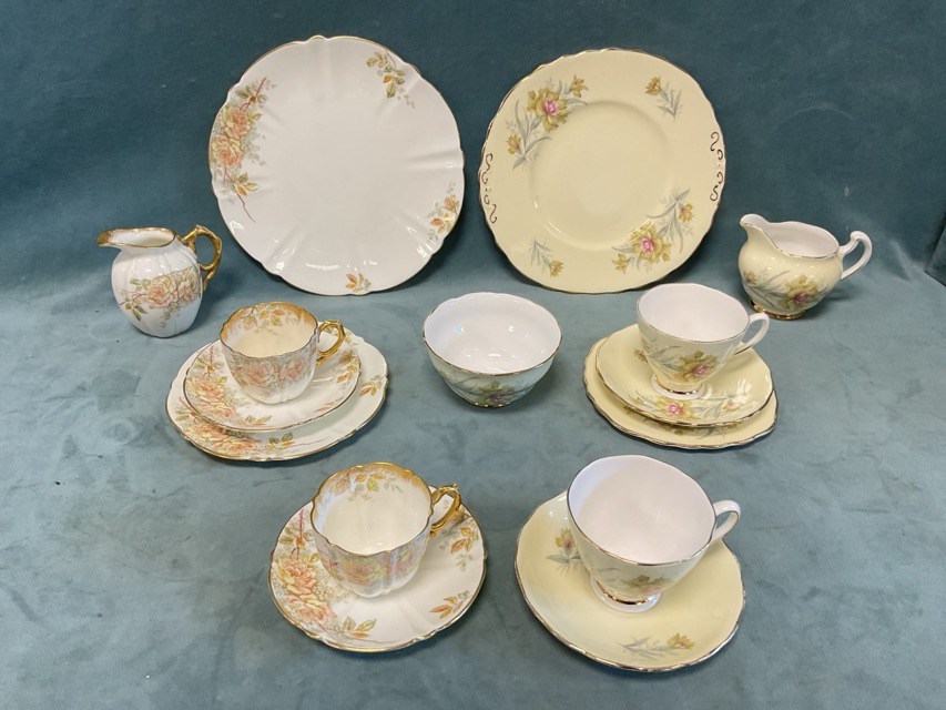 Three porcelain teasets - Victorian by Duchess decorated with roses, a Colclough decorated with carnations, and a Sadler with bellflowers in the Wellington pattern. (3)