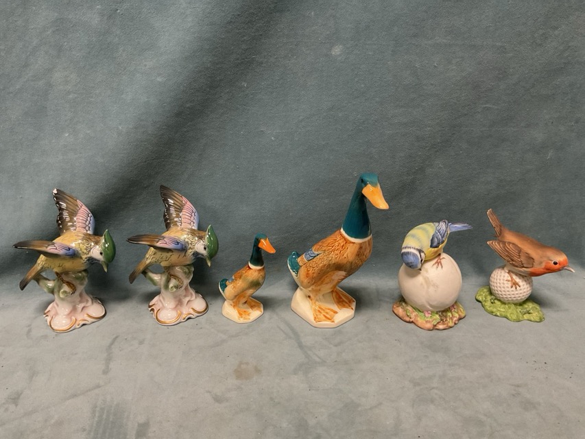 Miscellaneous ceramic birds - Crown Staffordshire, Beswick, groups, European, pairs, etc. (13)