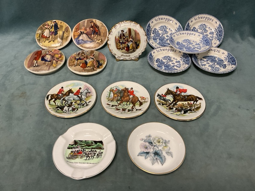 Miscellaneous ceramics - boxed Doulton & Wedgwood, character jugs, a set of four Cries of London pot lids, a pair of European porcelain vases, a Christmas mouse band, a set of Schweppes willow pattern dishes, etc. (A lot)