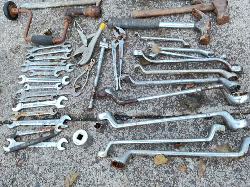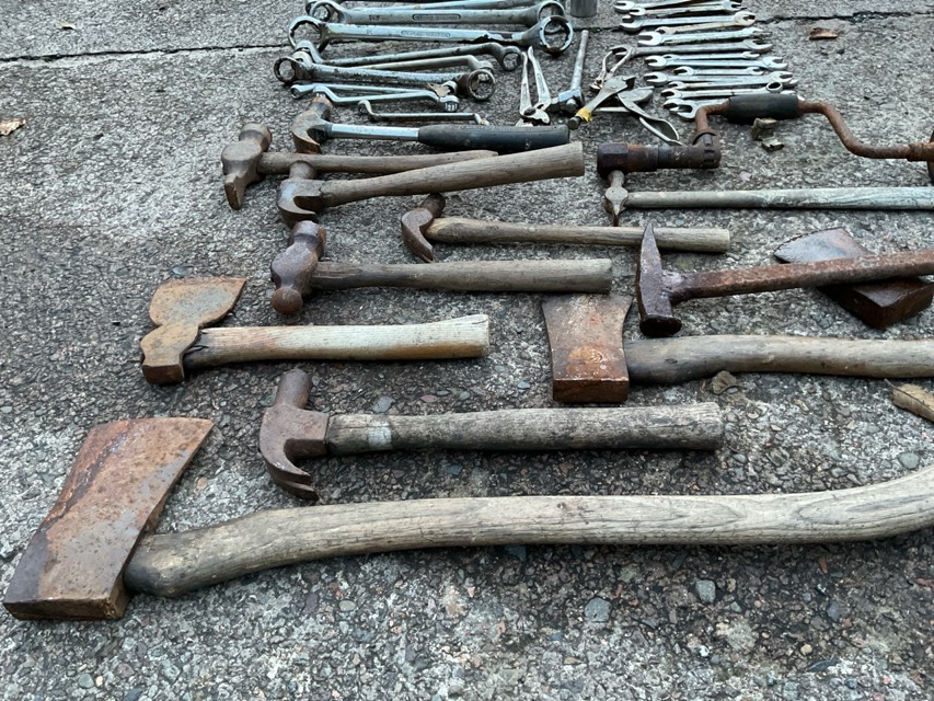 Miscellaneous tools - spanners, axes, hammers, sockets, brace, etc. (A lot)