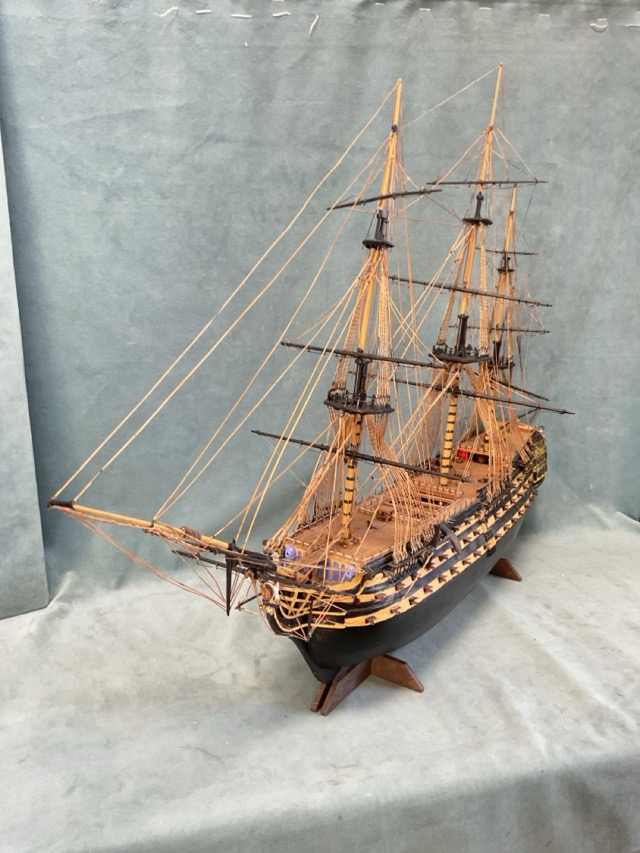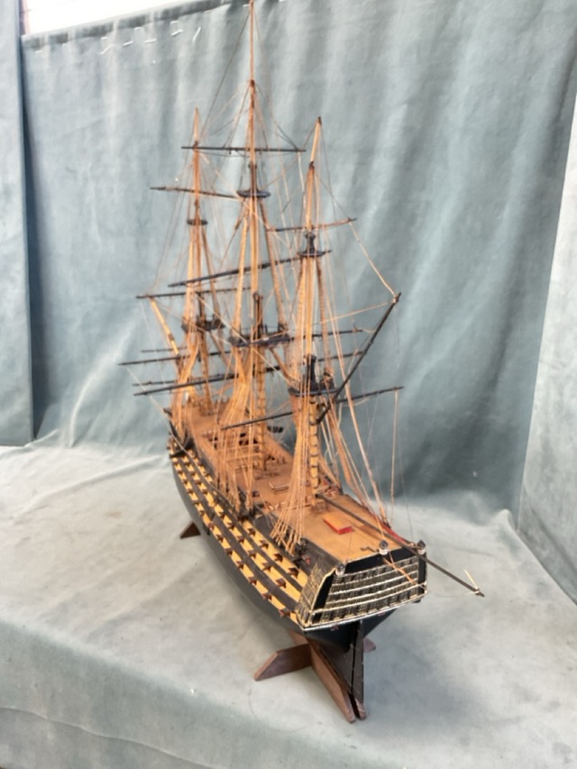 A large hand-built fully rigged model of Nelsons flagship HMS Victory on a stand; and the 1993, 1994, and 2022 Royal Naval Museum souvenir guides. (4)