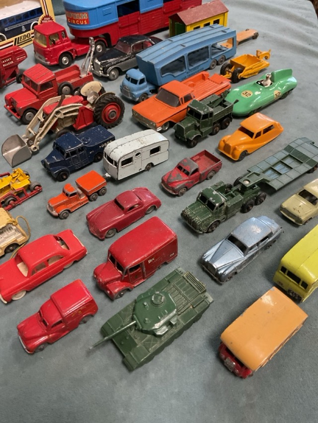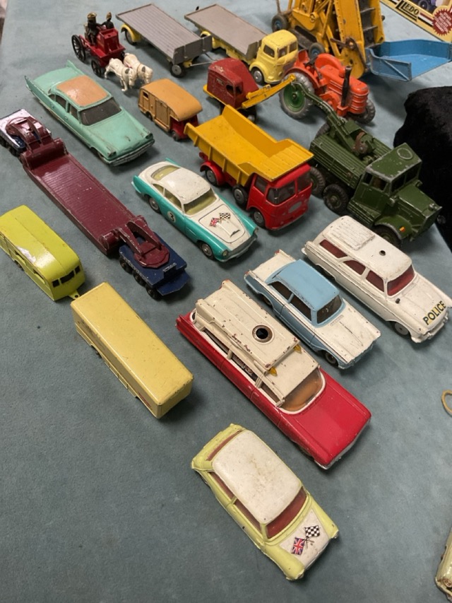 A collection of Corgi, Dinky, Matchbox model cars, lorries, farm machinery, etc; five boxed collectors cars; and three Franklin Mint precision vintage cars. (A lot)