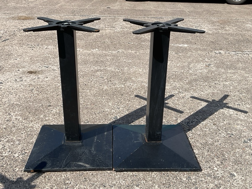 A pair of painted metal table bases with square columns on square chamfered plinths. (28.5in) (2)