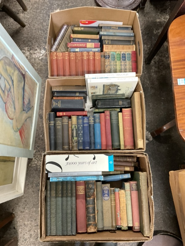 A miscellaneous quantity of books - Scottish local history, John Buchan, art books, novels, classics, Burns, some novels with dust covers, a Phaidon boxed art set, etc. (80)