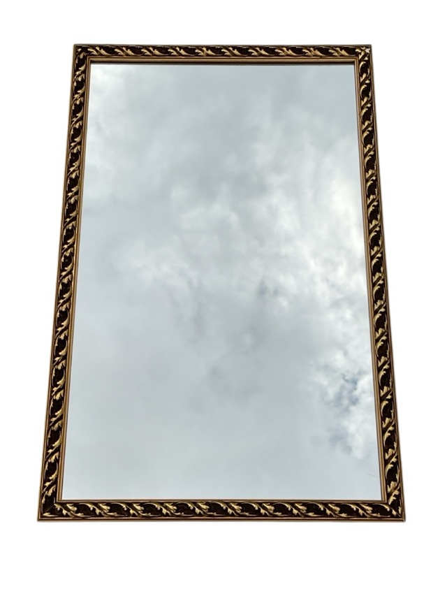 A rectangular wall mirror with gilt scrolling foliate frame enclosing a plain plate. (17.75in x 27.75in)