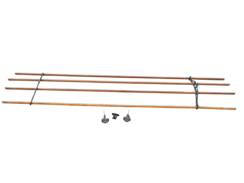 A rise & fall clothes airer with four slats to iron frames, complete with pulley mechanism. (83in)