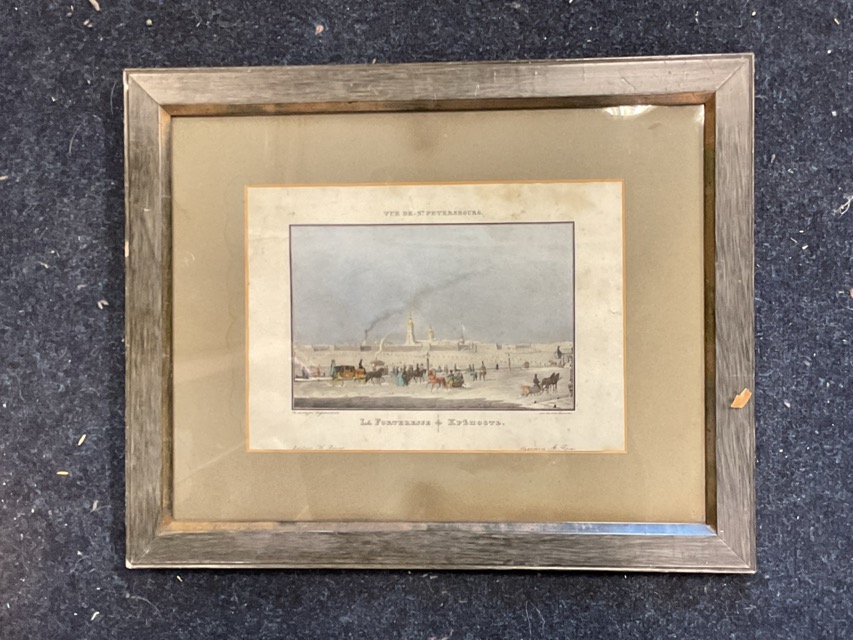A Russian handcoloured lithograph, a view of the Peter & Paul Fortress, St Petersburg - Russia in the snow, published by H Prévost in 1833, mounted and framed. (9in x 6in)