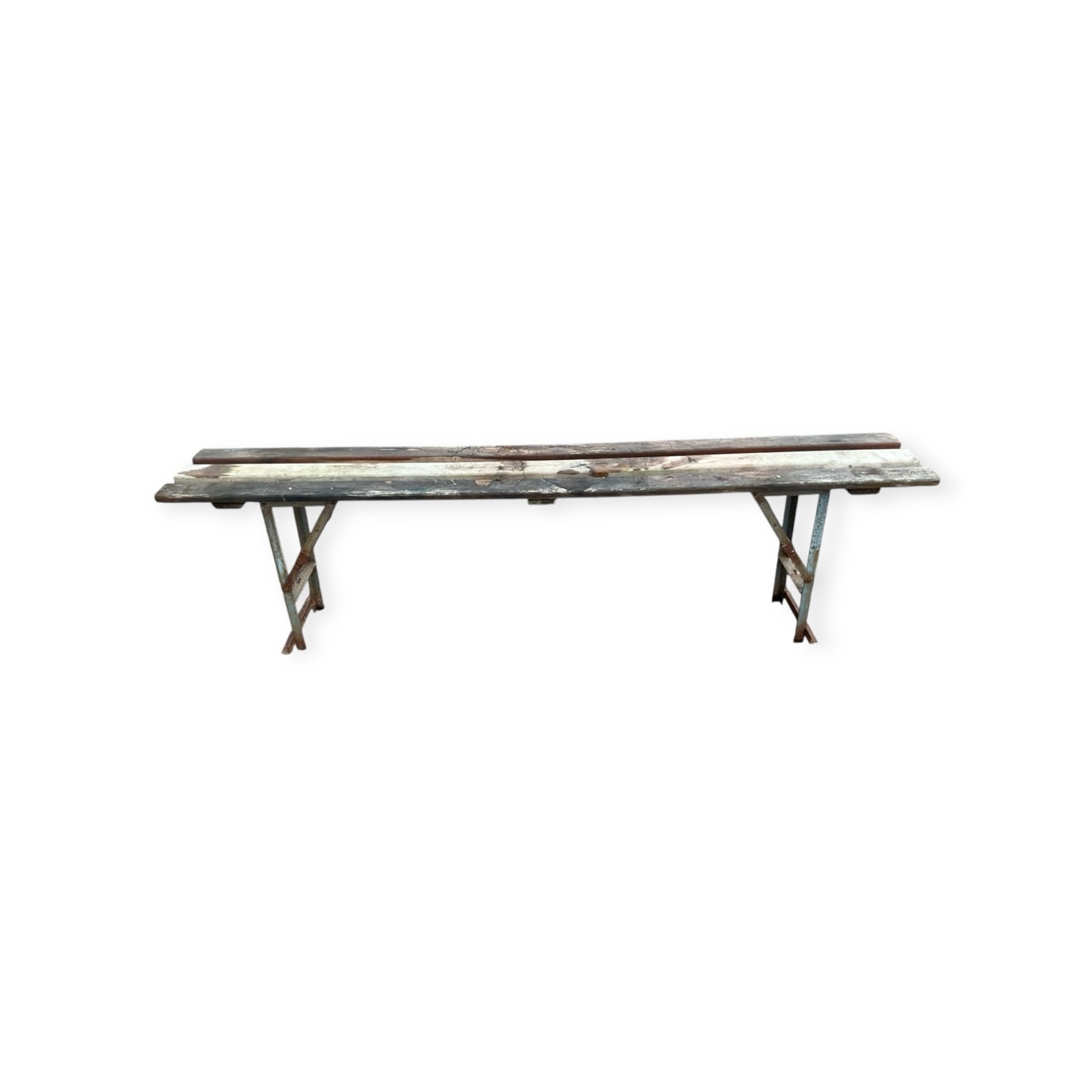 A rectangular folding garden bench with three battens to seat on angleiron supports. (70.5in)
