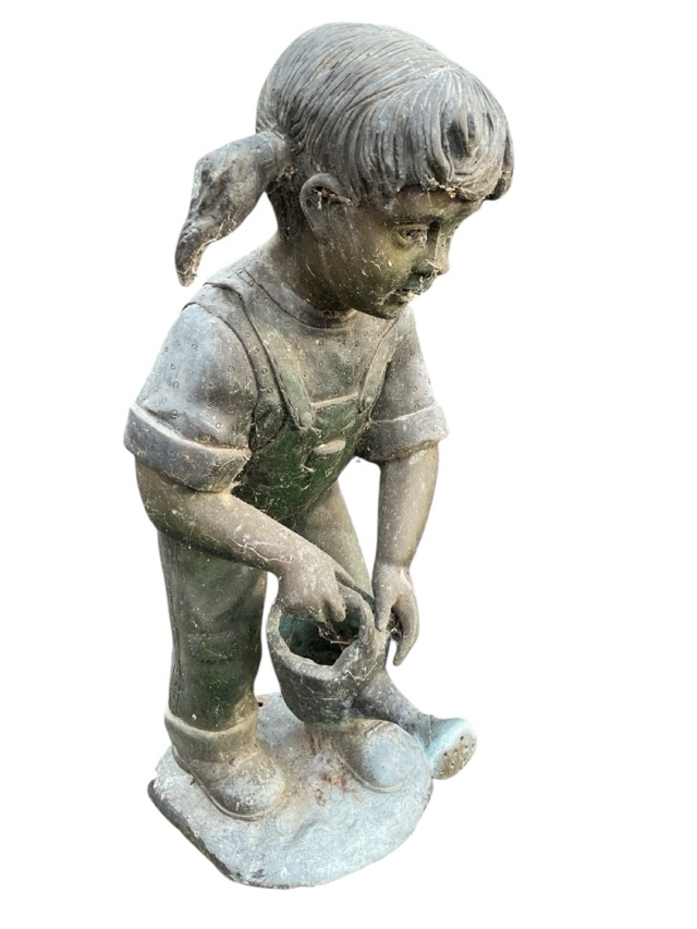 A bronze garden fountain modelled as a small girl holding a watering can containing the water spout. (23in)