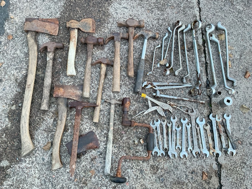Miscellaneous tools - spanners, axes, hammers, sockets, brace, etc. (A lot)