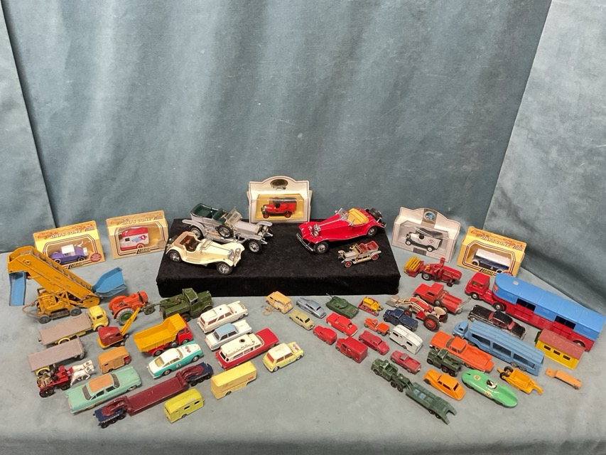A collection of Corgi, Dinky, Matchbox model cars, lorries, farm machinery, etc; five boxed collectors cars; and three Franklin Mint precision vintage cars. (A lot)