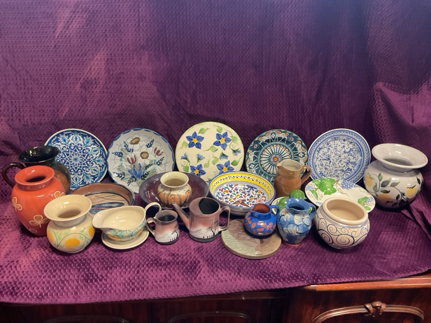 A collection of studio pottery - terracotta, R&H Boughton Somerset, stoneware, Belford Pottery, some Italian & Portuguese, handpainted plates & bowls, Lang of Germany, sgraffito, Emery, Highland Stoneware, etc. (24)