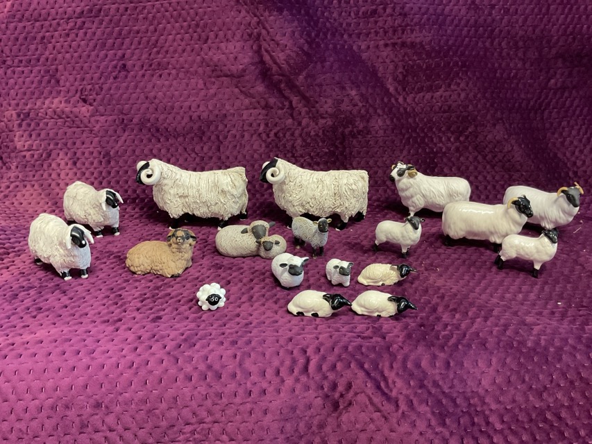 A collection of ceramic sheep - spaghetti fleeces, Castlewynd, Beswick, stoneware, comical handmade glass, etc. (18)