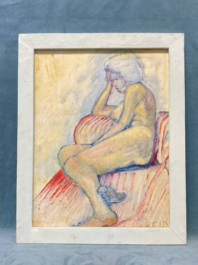 Amy Reid, oil on board, a reclining nude, titled Model Resting and dated to verso, signed and framed. (16in x 21.5in)