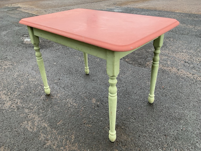 A painted Victorian style table with rectangular moulded top raised on turned legs. (41.75in x 26.5in x 29in)