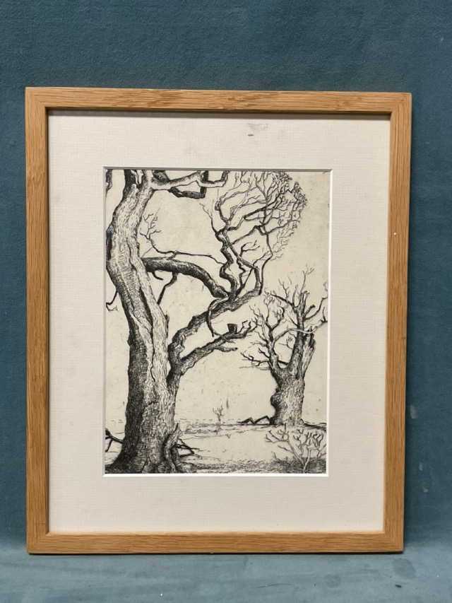 Ian Westacott, artists proof etching, gnarled trees in a landscape, titled Cadzow Fragment, mounted and framed. (5.75in x 7.75in)