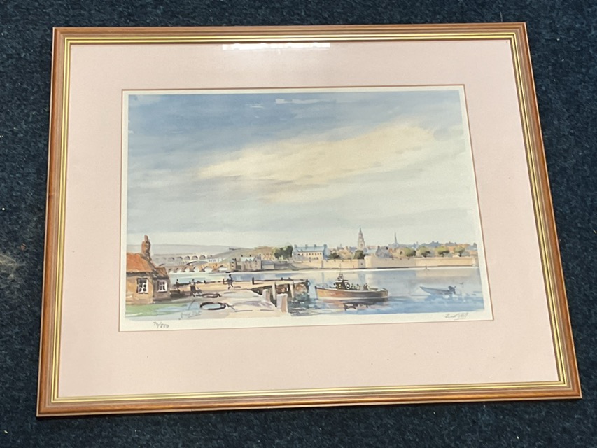 Fred Stott, limited edition coloured print, a view of Berwick-upon-Tweed from Tweedmouth, signed, numbered, mounted and framed. (15.5in x 11in)