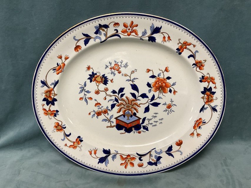 A large C19th Worcester chinoiserie decorated meat plate in the Derby/Masons style. (20.75in)
