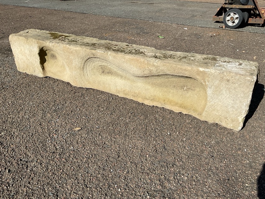 An unusual rectangular old sandstone lintel with two eroded cavities. (50.5in)