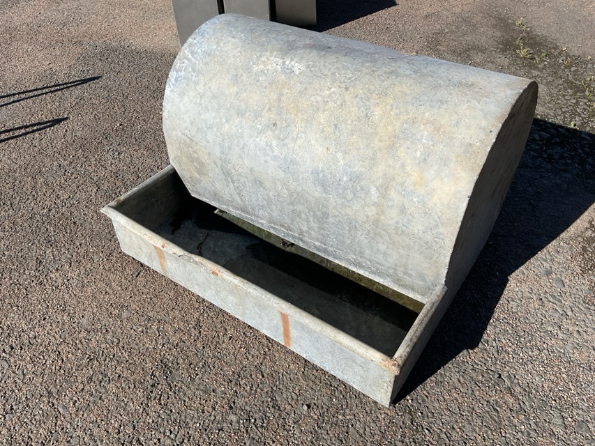 An unusual rectangular galvanised trough with tubular rim and domed cover. (36.75in x 32.5in x 22in)