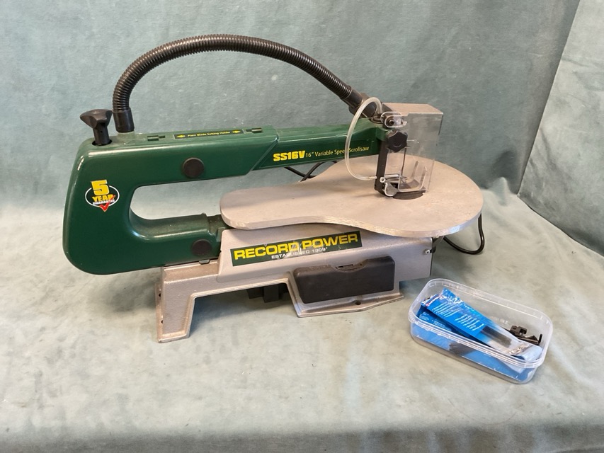 A Record 16in scroll saw - model SS16V with lamp, adjustable speed control, guard, etc.